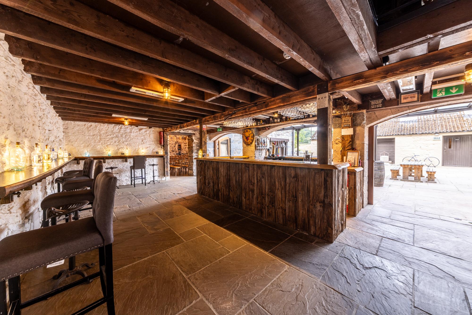 Our unique bar sits at the heart of the steading, serving both the inside and outdoor courtyard. Open and inviting, the bar connects all the main areas of the venue to give your day a relaxed and sociable feel. And although we’ve restored many of the space’s original fittings and quirks, we’ve taken care to include all the luxuries of a modern venue.